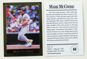 - Mark McGwire (1) 1992 Investor's Journal Card #86Opens in a new window or tabEUR 1.86q-city (9,611) 100%+EUR 15.56 shippingfrom United States