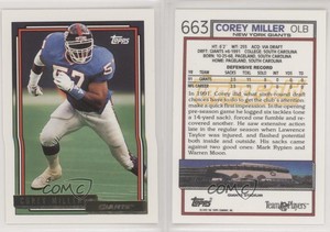 - 1992 Topps Corey Miller #663 New York Giants NFL FootballOpens in a new window or tabPre-OwnedEUR 2.40luca (330) 100%or Best Offer+EUR 14.45 shippingfrom United States