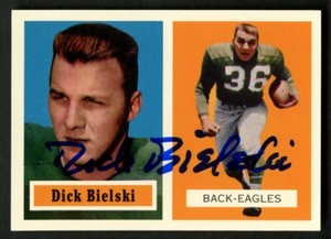 - DICK BIELSKI SIGNED 1957 TOPPS ARCHIVES #13 - PHILADELPHIA EAGLESOpens in a new window or tabEUR 8.07signedbballcardking (15,742) 99.6%Was: Previous PriceEUR 9.49 15% off+EUR 3.80 shippingfrom United States