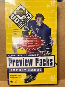 - 1998/99 Upper Deck UD Choice Preview Packs NHL Sealed Box 24 Packs Hockey NEWOpens in a new window or tabBrand NewEUR 81.91dadscardsandmore (237) 99.5%or Best Offer+EUR 34.31 shippingfrom United States4 watchers