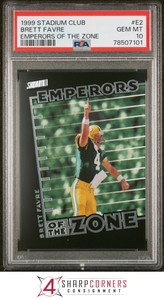 - 1999 Stadium Club Brett Favre EMPERORS OF THE ZONE #E2 graded PSA 10 cardOpens in a new window or tabNew (Other)EUR 75.8720% off 3+ with couponminisnstuff2014 (9,202) 100%+EUR 21.14 shippingfrom United StatesSponsored