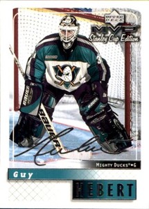 - 1999-00 Upper Deck MVP Stanley Cup Edition Guy Hebert Anaheim Mighty Ducks #3Opens in a new window or tabPre-OwnedEUR 0.68Top Rated SellerTop Rated Selleror Best Offersinboucollectables (455) 100%+EUR 2.42 shippingfrom Canada