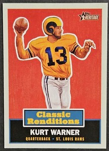 - 2001 Topps Heritage Classic Renditions #CR6 Kurt Warner Rams HOFOpens in a new window or tabPre-OwnedEUR 0.92brownsbuckeyefan25 (1,193) 99.9%+EUR 15.38 shippingfrom United States