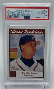 - 2001 Topps Heritage Classic Renditions Chipper Jones PSA 10 GEM MINT. POP 10Opens in a new window or tabNew (Other)EUR 9.48cooperstownlegends (1,284) 100%0 bids · Time left7d 2h left (11/03, 05:47 PM)+EUR 21.65 shippingfrom United States