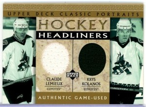- Claude Lemieux Krys Kolanos 2002-03 Upper Deck Classic Portraits Headliners JersOpens in a new window or tabPre-OwnedEUR 5.58cupton74 (3,168) 99.4%+EUR 15.77 shippingfrom United States