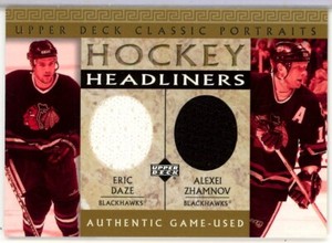 - DAZE / ZHAMNOV (CHICAGO) 02-03 UD CLASSIC PORTRAITS HOCKEY HEADLINERS JERSEY DZOpens in a new window or tabPre-OwnedEUR 2.72Top Rated SellerTop Rated Sellersgallery (9,915) 100%+EUR 5.61 shippingfrom Canada