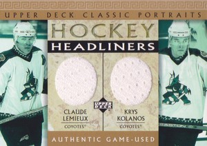 - 2002-03 Upper Deck Classic Portraits Headliners #LK Lemieux / Kolanos JERSEYOpens in a new window or tabPre-OwnedEUR 6.51Top Rated SellerTop Rated Sellerultimatesports2012 (5,740) 100%+EUR 9.30 shippingfrom Canada