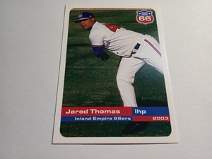 - 2003 Inland Empire 66ers Grandstand 27 Jared Thomas Grand Blanc Michigan MI CardOpens in a new window or tabEUR 12.13mcvikes (19,885) 100%+EUR 19.51 shippingfrom United States