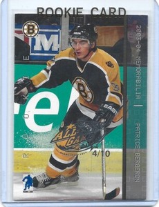 - 2003/04 BE A PLAYER MEMORABILIA PATRICE BERGERON ALL-STAR GAME RC #200 #d4/10Opens in a new window or tabEUR 273.43Top Rated SellerTop Rated Sellerjeff888sara (22,833) 99.9%Shipping not specifiedfrom Canada