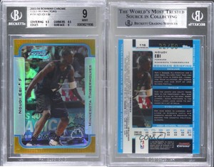 - 2003-04 Bowman Rookies Chrome Gold Refractor /50 Ndudi Ebi BGS 9 MINT Rookie RCOpens in a new window or tabFulfilled by COMC - World’s largest consignment serviceNew (Other)
