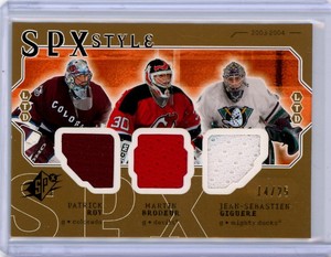 - 2003 SPx Style /99 Jean-Sebastien Giguere Patrick Roy Martin Brodeur #SS-RBG HOFOpens in a new window or tabFulfilled by COMC - World’s largest consignment service
