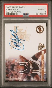 - New Listing2005-06 Press Pass Auto Chris Paul Rookie Auto Rare Blue Ink RC PSA 8 NM-MTOpens in a new window or tabNew (Other)EUR 1.16mackinmadness (851) 100%2 bids · Time left6d 7h left (Wed, 07:15 PM)+EUR 20.04 shippingfrom United States