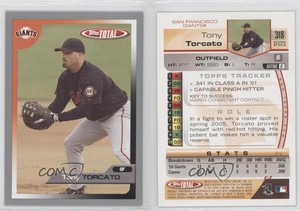 - 2005 Topps Total #318 Tony Torcato San Francisco GiantsOpens in a new window or tabPre-OwnedEUR 1.47oceancardsandcollectables (14,210) 100%or Best Offer+EUR 14.42 shippingfrom United States