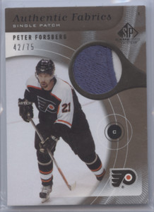 - PETER FORSBERG 2006 SP GAME USED AUTHENTIC FABRICS PATCH /75 FLYERSOpens in a new window or tabPre-OwnedEUR 40.05Top Rated SellerTop Rated SellerBuy It Nowj-man373 (55,348) 100%+EUR 15.30 shippingfrom United States