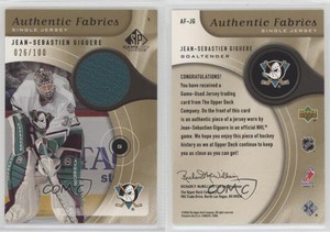 - 2005-06 SP Game Used Edition Authentic Fabrics Jean-Sebastien Giguere #AF-JGOpens in a new window or tabFulfilled by COMC - World’s largest consignment servicePre-Owned
