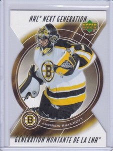 - 2005-06 Upper Deck McDonald's Next Generation Andrew Raycroft #NG1 Boston BruinsOpens in a new window or tabPre-OwnedEUR 3.68Top Rated SellerTop Rated Selleror Best Offercollect_edition_montreal (16,597) 99.9%+EUR 6.82 shippingfrom Canada