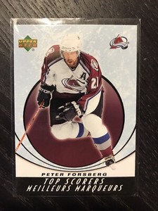 - 2005-06 McDonald's Upper Deck Top Scorers #TS5 Peter ForsbergOpens in a new window or tabEUR 10.20Top Rated SellerTop Rated SellerBuy It Nowsport-collect (47,654) 100%+EUR 20.47 shippingfrom Canada
