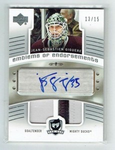 - 05-06 UD The Cup Emblems of Endorsements Jean-Sebastien Giguere /15 AutoOpens in a new window or tabPre-OwnedEUR 118.32Top Rated SellerTop Rated SellerBuy It Nowgreg1465 (18,635) 100%+EUR 22.15 shippingfrom United States