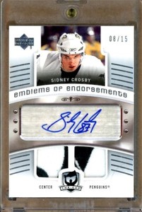 - 2005-06 The Cup Emblems of Endorsement #EESC Sidney CROSBY RC Patch Auto /15Opens in a new window or tabPre-OwnedEUR 14,492.69Top Rated SellerTop Rated SellerWas: Previous PriceEUR 17,050.23 15% offhobbycardsforsale87 (6,629) 99.9%Buy It Now+EUR 27.29 shippingfrom Canada12 watchers