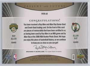 - 2006-07 Upper Deck Trilogy Generations Ray Allen Dual Jersey 43/50Opens in a new window or tabPre-OwnedEUR 18.20past-to-present (5,371) 100%or Best Offer+EUR 15.23 shippingfrom United States
