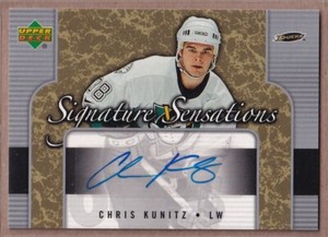 - 2006-07 Upper Deck Signature Sensations #SSCK Chris Kunitz AUTO - Anaheim DucksOpens in a new window or tabPre-OwnedEUR 13.64Top Rated SellerTop Rated Selleror Best Offerultimatesports2012 (5,838) 100%+EUR 9.09 shippingfrom CanadaSponsored