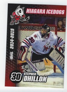 - 2014-15 Niagara Icedogs (OHL) Stephen Dhillon (goalie)Opens in a new window or tabEUR 2.28Top Rated SellerTop Rated SellerBuy It Nowscotso53 (35,431) 99.8%+EUR 3.64 shippingfrom United States