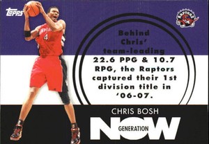 - 2007-08 Topps Basketball Generation Now #GN4 Chris Bosh - RaptorsOpens in a new window or tabPre-OwnedEUR 1.37thehingeguy (4,255) 100%Buy It Now+EUR 14.25 shippingfrom United States