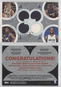 - 2006-07 TOPPS LUXURY BOX DIRK NOWITZKI / J. STACKHOUSE / J. HOWARD TRIPLE RELICSOpens in a new window or tabEUR 18.28treazureisland1 (5,157) 100%Buy It Now+EUR 19.28 shippingfrom United States