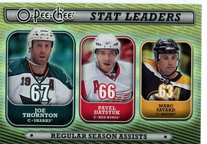 - 08/09 OPC Joe Thornton / Pavel Datsyuk / Marc Savard Stat Leaders card #SL3Opens in a new window or tabEUR 5.45Top Rated SellerTop Rated Selleror Best Offerg1v2d3 (24,697) 100%+EUR 9.55 shippingfrom Canada