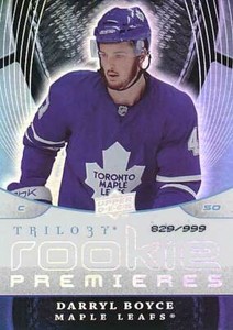 - DARRYL BOYCE Maple Leafs 2008-09 Upper Deck Trilogy #105 Rookie Card RC #582/999Opens in a new window or tabEUR 1.63beeeradsballcards (17,067) 100%Was: Previous PriceEUR 2.72 40% offBuy It Now+EUR 16.12 shippingfrom United States