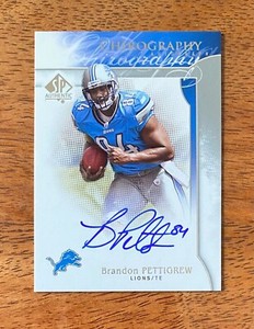 - Brandon Pettigrew 2009 SP Authentic Chirography Autograph Detroit LionsOpens in a new window or tabPre-OwnedEUR 1.82Top Rated SellerTop Rated Seller1 bid · Time left1m left (Today 03:30 AM)ami_photo_australia (254) 99.2%+EUR 3.33 shippingfrom Australia