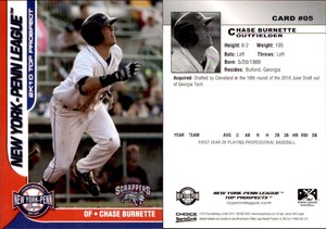 - Chase Burnette 2010 Choice New York-Penn League Top Prospects #05 CardOpens in a new window or tabPre-OwnedEUR 1.67Top Rated SellerTop Rated SellerWas: Previous PriceEUR 2.79 40% offautographden (21,928) 100%Shipping not specifiedfrom United States