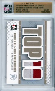- 2010 In The Game Fall Expo Ultimate Memorabilia TOP 10 REDEMPTION Wayne GretzkyOpens in a new window or tabPre-OwnedEUR 48.24Top Rated SellerTop Rated Selleror Best Offersbe99 (3,033) 99.6%Shipping not specifiedfrom Canada