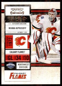 - 2010-11 Playoff Contenders Calgary Flames Hockey Card #63 Miikka KiprusoffOpens in a new window or tabBurbank Sportscards - World’s Largest SelectionPre-Owned