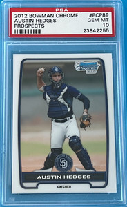 - PSA 10 - 2012 BOWMAN CHROME PROSPECTS - AUSTIN HEDGES (RC) #BCP89 = GEM MINT 10Opens in a new window or tabNew (Other)EUR 13.18baseballjre (23,044) 99.6%1 bid · Time left16h 1m left (Today 06:26 PM)+EUR 20.19 shippingfrom United States