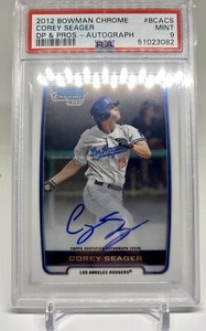 - New ListingCorey Seager 2012 Bowman Chrome 1st RC Auto PSA 9 Mint World Series MVP RangersOpens in a new window or tabNew (Other)EUR 21.40ybomber (2,373) 100%9 bids · Time left4d 15h left (Tue, 06:00 PM)+EUR 24.42 shippingfrom United States