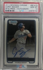 - 2012 Bowman Chrome Draft Picks & Prospects Corey Seager RC Rookie PSA 10 AUTOOpens in a new window or tabNew (Other)EUR 334.32rstclerk (394) 100%31 bids · Time left5d 9h left (Wed, 12:00 PM)+EUR 29.45 shippingfrom United States
