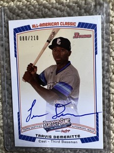 - 2012 Bowman Perfect Game All-American Classic Auto Travis Demeritte/210Opens in a new window or tabPre-OwnedEUR 5.49jumpmangraham (384) 100%+EUR 15.46 shippingfrom United States