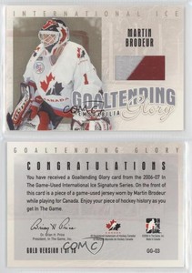 - 2006 In the Game-Used International Ice Signature Series Gold /10 Martin BrodeurOpens in a new window or tabFulfilled by COMC - World’s largest consignment servicePre-OwnedEUR 104.47Top Rated SellerTop Rated SellerBuy It Nowcomc_consignment (794,591) 99.8%+EUR 21.74 shippingfrom United StatesSponsored