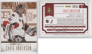 - 2012-13 (SENATORS) Limited Monikers #MCA Craig Anderson/99 AutoOpens in a new window or tabBurbank Sportscards - World’s Largest SelectionPre-Owned