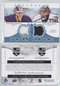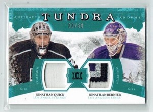 - 2011-12 UD Artifacts Tundra Tandems Jonathan Quick/Bernier /50 Dual PatchesOpens in a new window or tabPre-OwnedEUR 45.46bsteeboy200 (2,912) 100%or Best Offer+EUR 19.55 shippingfrom United States