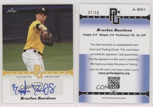 - 2013 Leaf Perfect Game Showcase Auto Gold /50 Braxton Davidson #A-BD1 AutoOpens in a new window or tabFulfilled by COMC - World’s largest consignment service