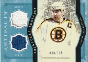 - RAY BOURQUE 2012-13 ARTIFACTS TREASURED SWATCHES DUAL JERSEY BRUINSOpens in a new window or tabEUR 7.27sportschampioncards (27,193) 100%Buy It Now+EUR 17.07 shippingfrom United States