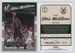 - Brand New: 2016-17 Donruss Khris Middleton Milwaukee Bucks Trading CardOpens in a new window or tabPre-OwnedEUR 0.17mocha-mo (164) 100%0 bids · Time left2d 7h left (Thu, 04:08 AM)+EUR 18.84 shippingfrom United States