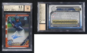 - 2019 Bowman Chrome Prospect Orange Refractor /25 Esteury Ruiz BGS 9.5 AutoOpens in a new window or tabFulfilled by COMC - World’s largest consignment serviceEUR 1,055.43Top Rated SellerTop Rated Sellercomc_consignment (775,545) 99.8%+EUR 55.36 shippingfrom United States