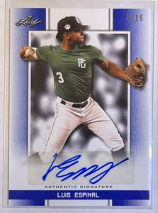 - Luis Espinal 2019 Leaf Perfect Game National Showcase Blue Auto #d 7/15 #BA-LE1Opens in a new window or tabPre-OwnedEUR 11.63mathu_78 (469) 99.7%+EUR 14.78 shippingfrom United States