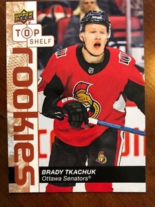 - 2019-20 Upper Deck National Convention Top Shelf Rookies Brady Tkachuk OttawaOpens in a new window or tabPre-OwnedEUR 1.85sportscardmint (44,782) 99.7%Buy It Now+EUR 15.00 shippingfrom United States