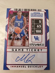 - Immanuel Quickley 2020-21 Panini Contenders #5 Red Game Ticket Auto RookieOpens in a new window or tabPre-OwnedEUR 9.27Top Rated SellerTop Rated SellerBuy It Nowbaseball12114 (8,448) 99.9%+EUR 15.86 shippingfrom United States