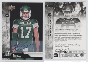 - Zach Collaros Signed 2018 Upper Deck CFL Football card Saskatchewan RoughridersOpens in a new window or tabPre-OwnedEUR 17.07Top Rated SellerTop Rated Selleror Best Offerregs43 (18,067) 100%+EUR 20.50 shippingfrom Canada