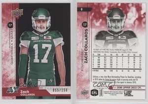 - 2018 Upper Deck CFL Red /150 Zach Collaros #9Opens in a new window or tabFulfilled by COMC - World’s largest consignment service